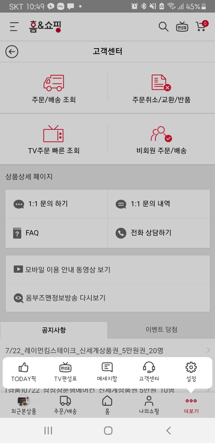 다른 홈쇼핑은 방송끝날때 당첨자를 발표하기도하던데 홈앤쇼핑은 앱에서 상품권 당첨확인을 해야한다고 하더라구요..