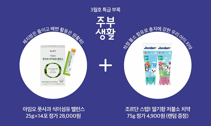 특별부록 : 아임오 풋사과 식이섬유 밸런스 + 조르단 스텝1 딸기향 저불소 치약 1개 (랜덤)